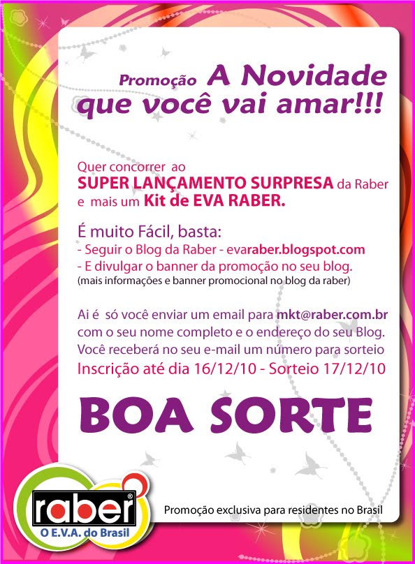 - Seguir o Blog da Raber http://www.evaraber.blogspot.com/